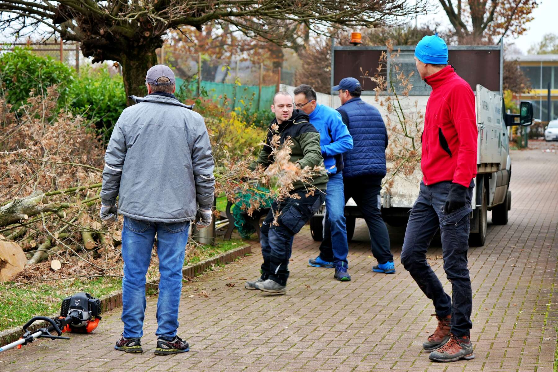 Jochen Dammann und Moez Ben Amor vom Vorstand des TC02 freuten sich, dass auch bei den Bäumen und Sträuchern ordentlich was passiert ist: „Dank professioneller Unterstützung konnten unsere Mitglieder so richtig zupacken und die Anlage auf Vordermann bringen.“