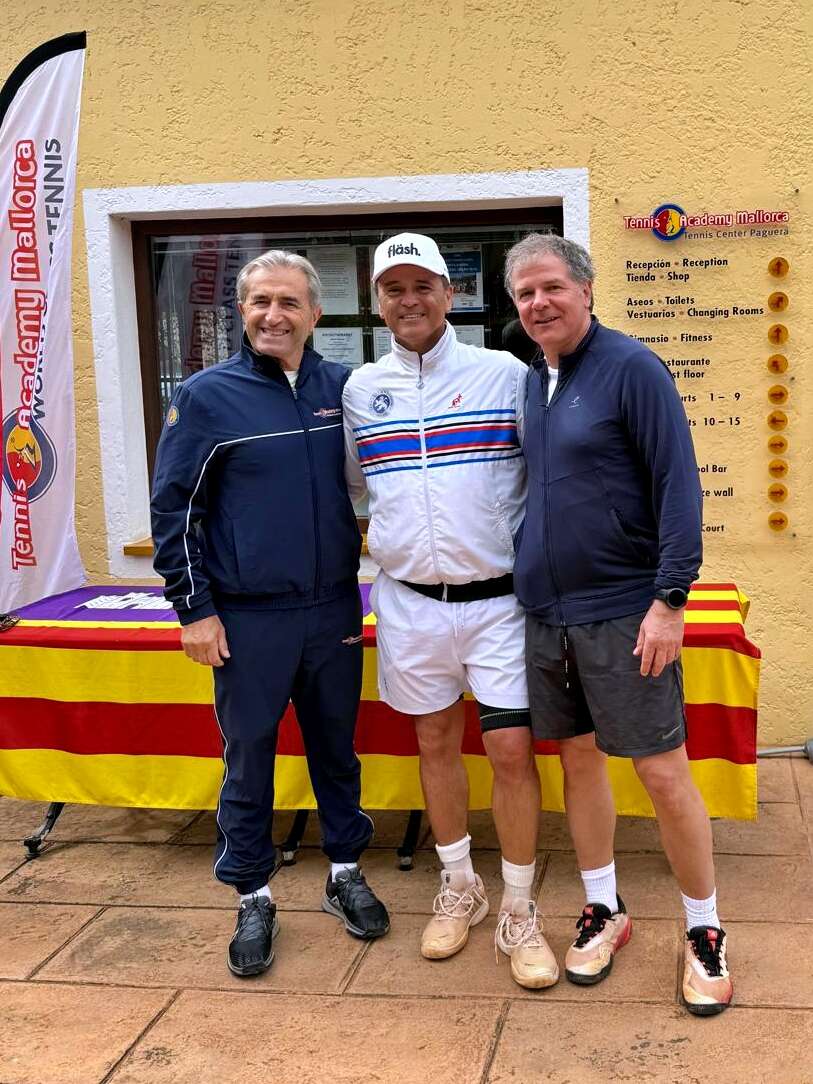 Text: Birgitta Hohenester, Fotos (privat): Auf dem ersten Foto links Gewinner Erik Plinke, rechts Finalist Armin Jäger auf der Anlage der Tennis Academy Mallorca; auf dem zweiten Foto von links Tennistrainer Ali, Armin und der Ex-Fußballprofi Andy Möller.
